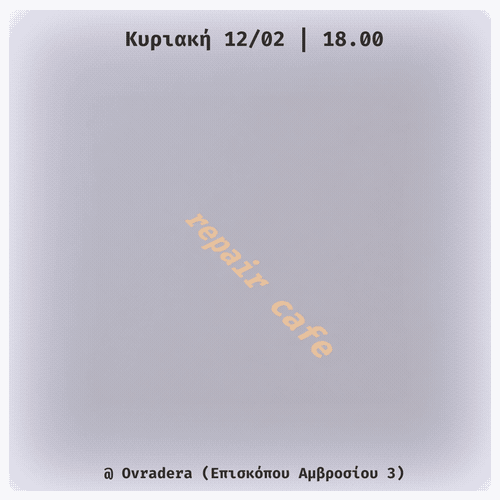 To Repair Cafe, ένα εγχείρημα του gizmo_lab, στοχεύει να δώσει λίγη ακόμα ζωή στις συσκευές μας, την Κυριακή 12 Φλεβάρη στις 18:00 στο Κοινωνικό Κέντρο Ovradera.