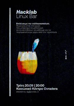 “Linux” Bar οικονομικής ενίσχυσης του gizmo_lab, του hacklab που στεγάζεται στο κοινωνικό κέντρο Ovradera, την Τρίτη 4 Οκτωβρίου από τις 20:00.